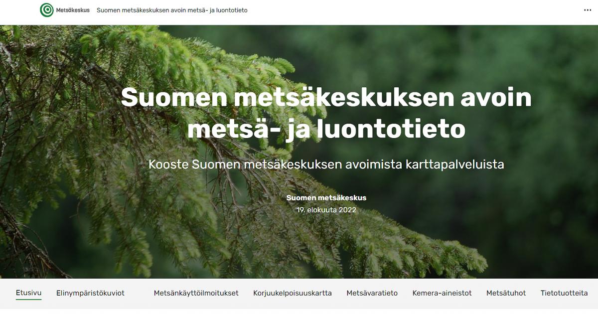 Suomen metsäkeskuksen avoin metsä- ja luontotieto - Kooste Suomen metsäkeskuksen avoimista karttapalveluista on Metsäkeskuksen verkkosivuilla.