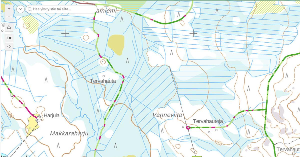 Karttapalvelusta voi katsoa yksityisteiden ja siltojen kuntoa Suomessa.