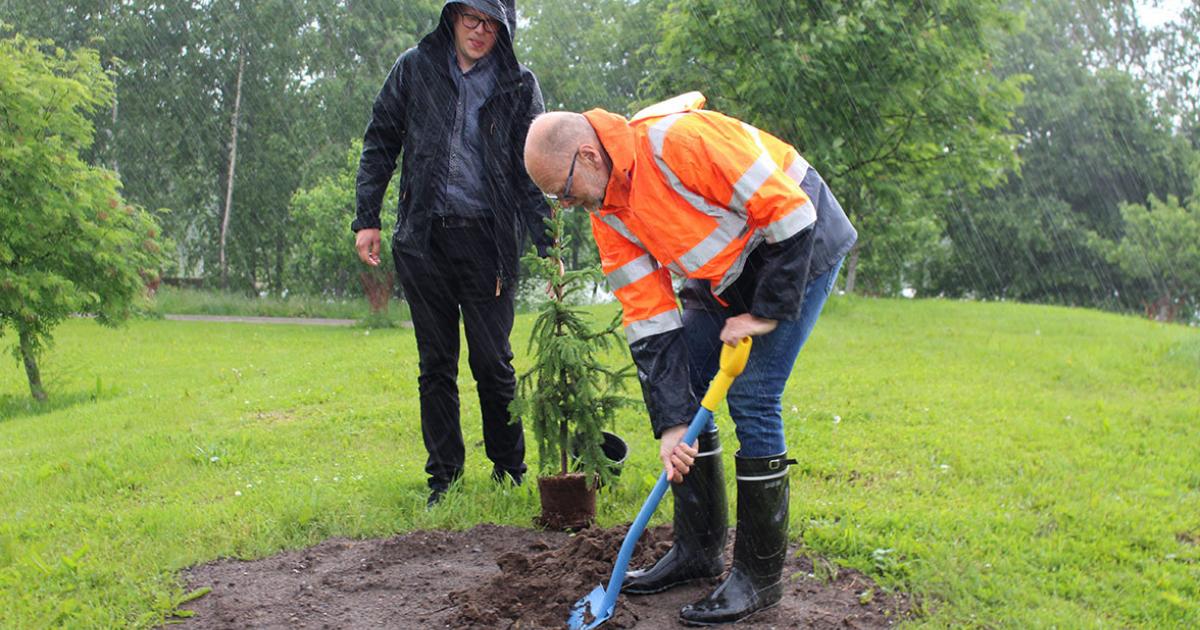 Vid varje prisöverräckning planterades en trädplanta på en plats som pristagaren valt. Foto: Anne Kaljunen