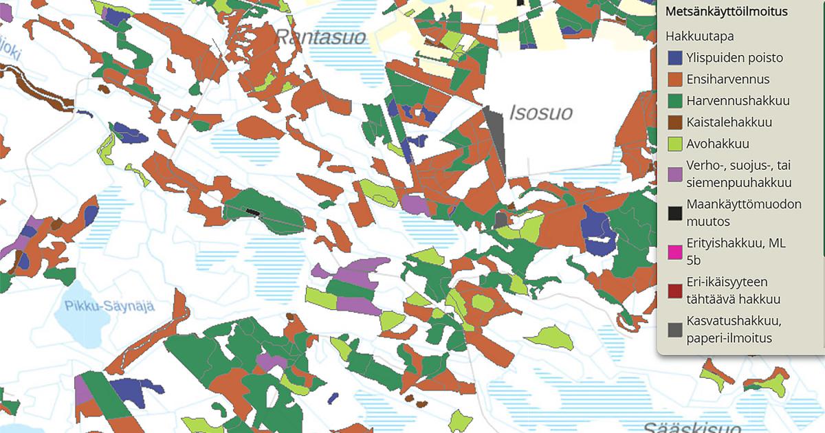 Skogscentralens karttjänst som visar var det gjorts anmälningar om användning av skog uppdateras inte just nu. Det förekommer också andra brister i distributionen av öppen skogs- och naturinformation. Till exempel gränssnitten och karttjänsten för kronmodeller fungerar långsamt. Problemen beror på ett omfattande systembyte.