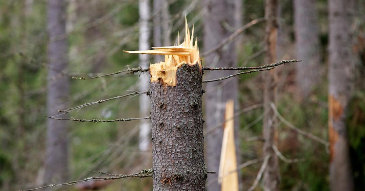Bildtext: Typiska skogsskador är storm-, insekts- och snöskador.
