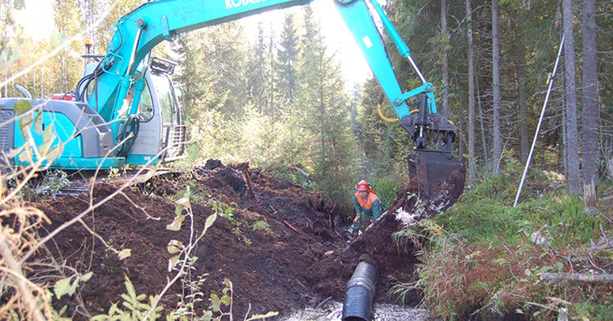Vattenvårdsprojekt handlar bland annat om att bygga rördammar. Rördammar bidrar till att minska den belastning av sediment som skogsdikning orsakar vattendragen.  Bild: Riikka Salomaa