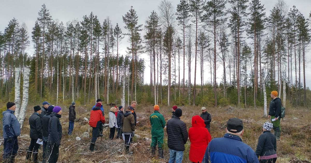På naturhänsynsvandringar har skogsägare fått lära sig om naturhänsynsåtgärder som att skapa högstubbar och lämna skyddszoner intill vattendrag. Bild: Milla Tahvanainen