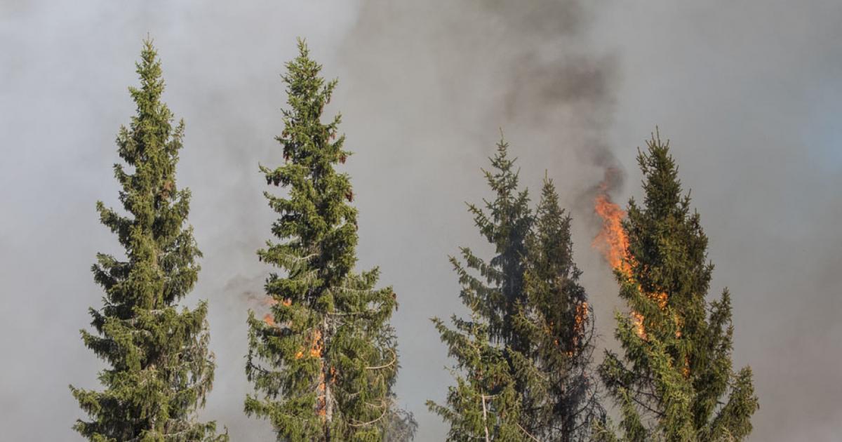 Bildtext: Elden sprider sig farligt snabbt om den når trädkronorna. Bild: Benjam Pöntinen