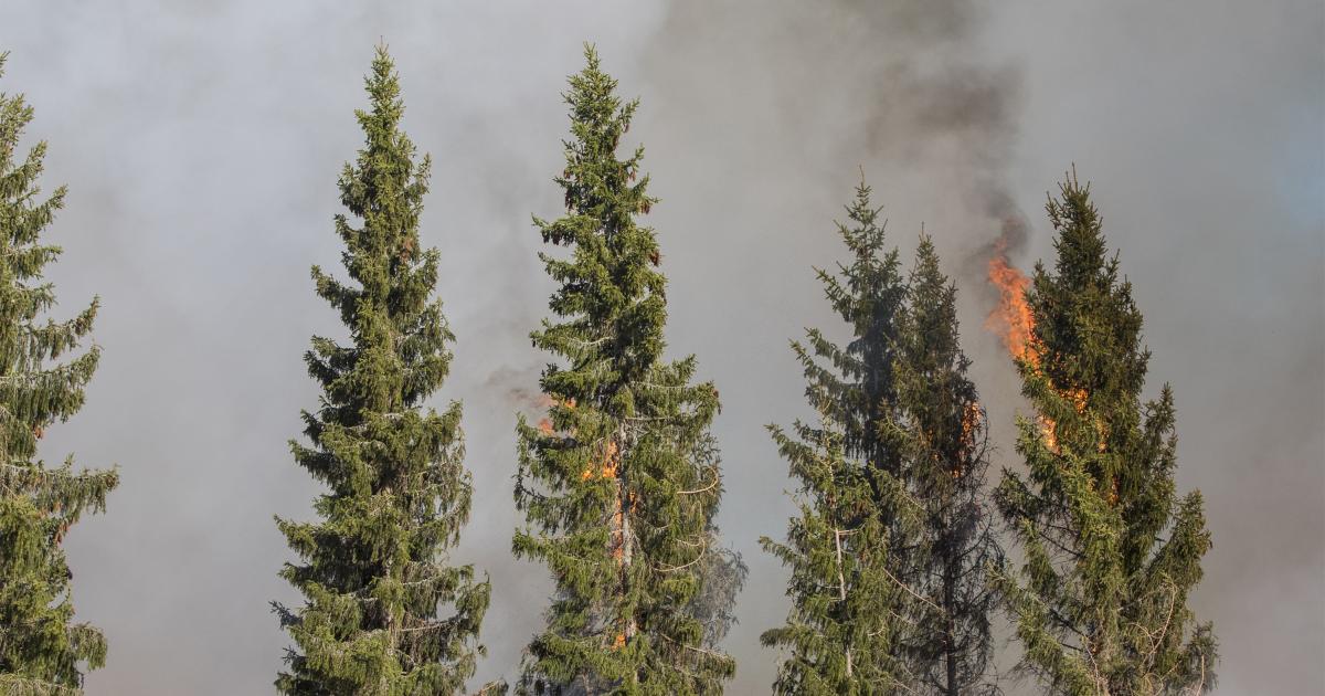 Speciellt i granskog kan branden sprida sig till topparna. Då går den snabbt fram och skadar beståndet allvarligare än vad en markbrand gör. Bild: Benjamin Pöntinen.