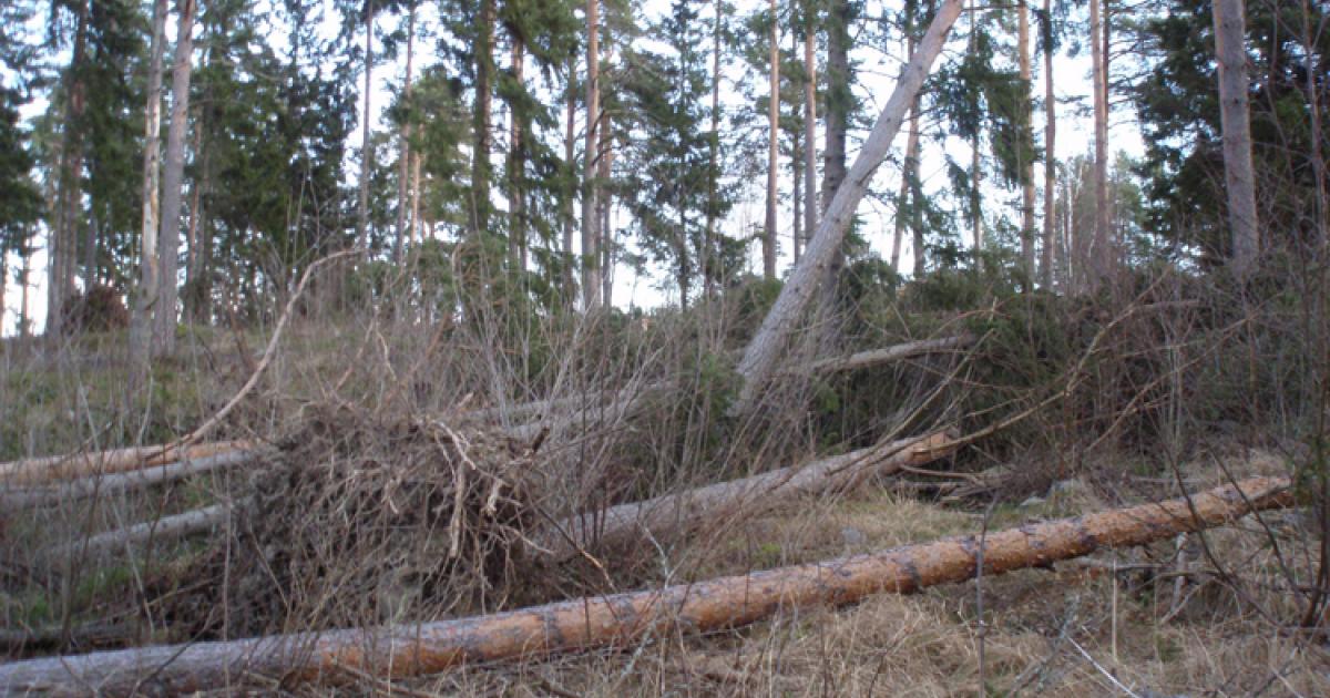 Markägaren kan lämna kvar enstaka kullfallna träd i skogen eftersom de så småningom utvecklas till död ved, som är viktig för den biologiska mångfalden. Om stormen har dragit omkull ett större antal träd i samma område måste man beakta skyldigheterna i skogsskadelagen om bekämpning av insektsskador.